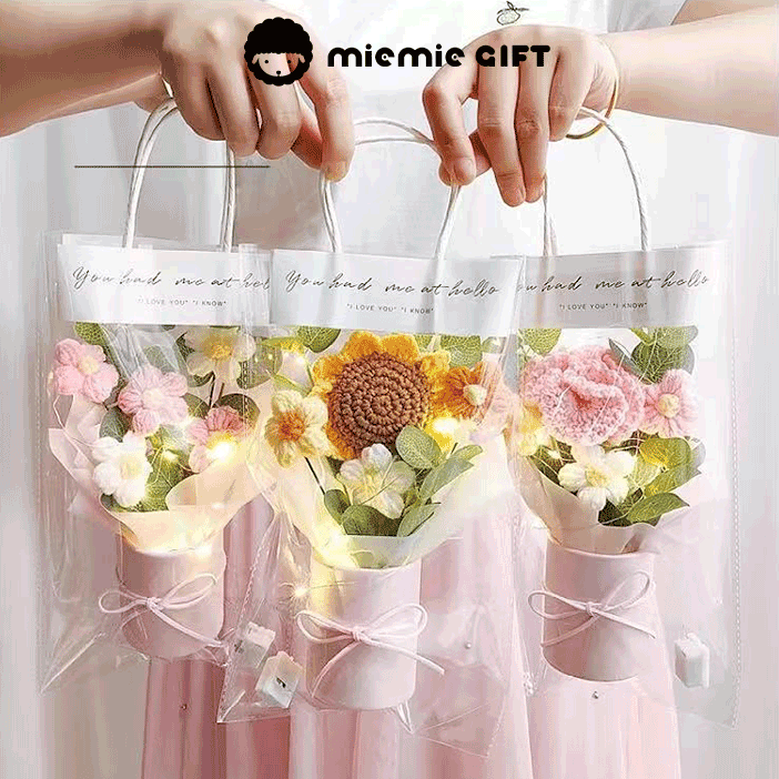 Viene con una bolsa de regalo transparente, completa con cálidas luces LED para un toque extra de encanto.
