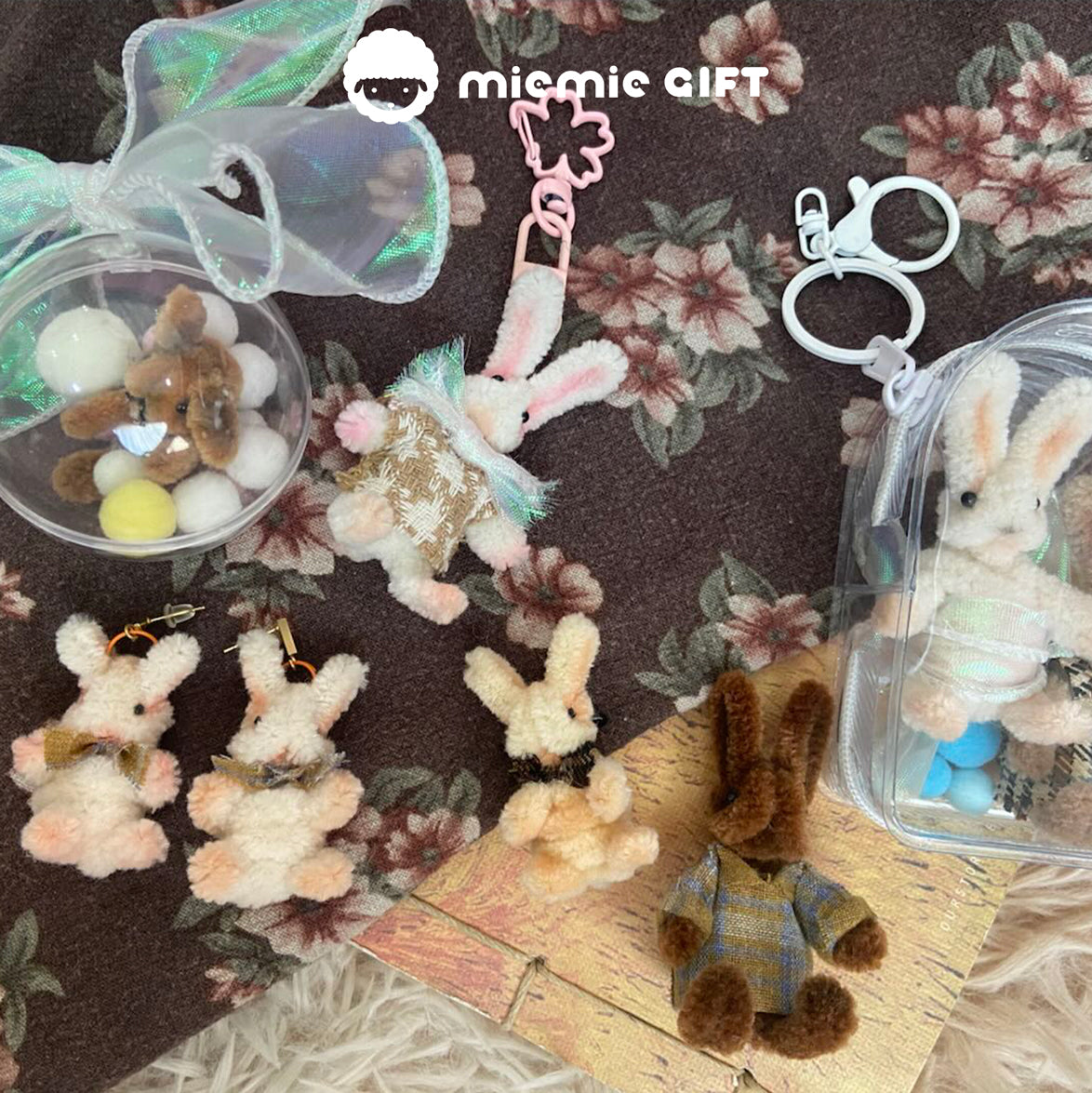 Easter Bunny Collection made from high-quality wool pipe cleaners, perfect for DIY lovers, gift-givers, and kawaii collectors. Choose between ready-made plushies or DIY kits that let you create your own soft and sweet bunny magic!
